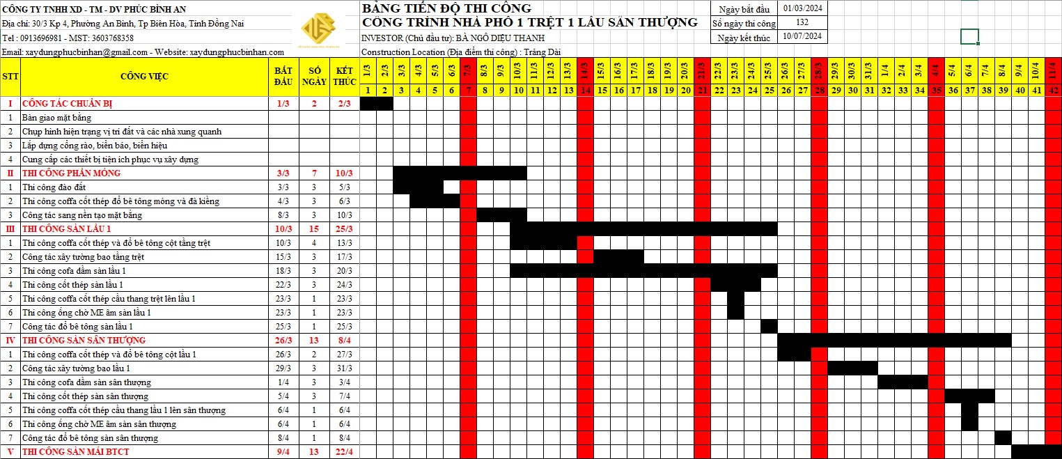 Trước khi bắt đầu xây dựng, chủ nhà nên yêu cầu nhà thầu cung cấp một lịch trình chi tiết về các giai đoạn thi công. Lịch trình này cần nêu rõ từng bước từ khâu thiết kế, xin phép xây dựng cho đến các giai đoạn thi công cụ thể như móng, khung, mái và hoàn thiện nội thất. Việc có một lịch trình rõ ràng sẽ giúp bạn theo dõi tiến độ và đảm bảo rằng mọi thứ diễn ra đúng kế hoạch.